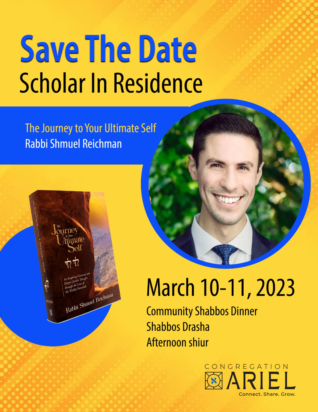 For all questions and speaking invitations, you can contact Rabbi Reichman at [email protected]