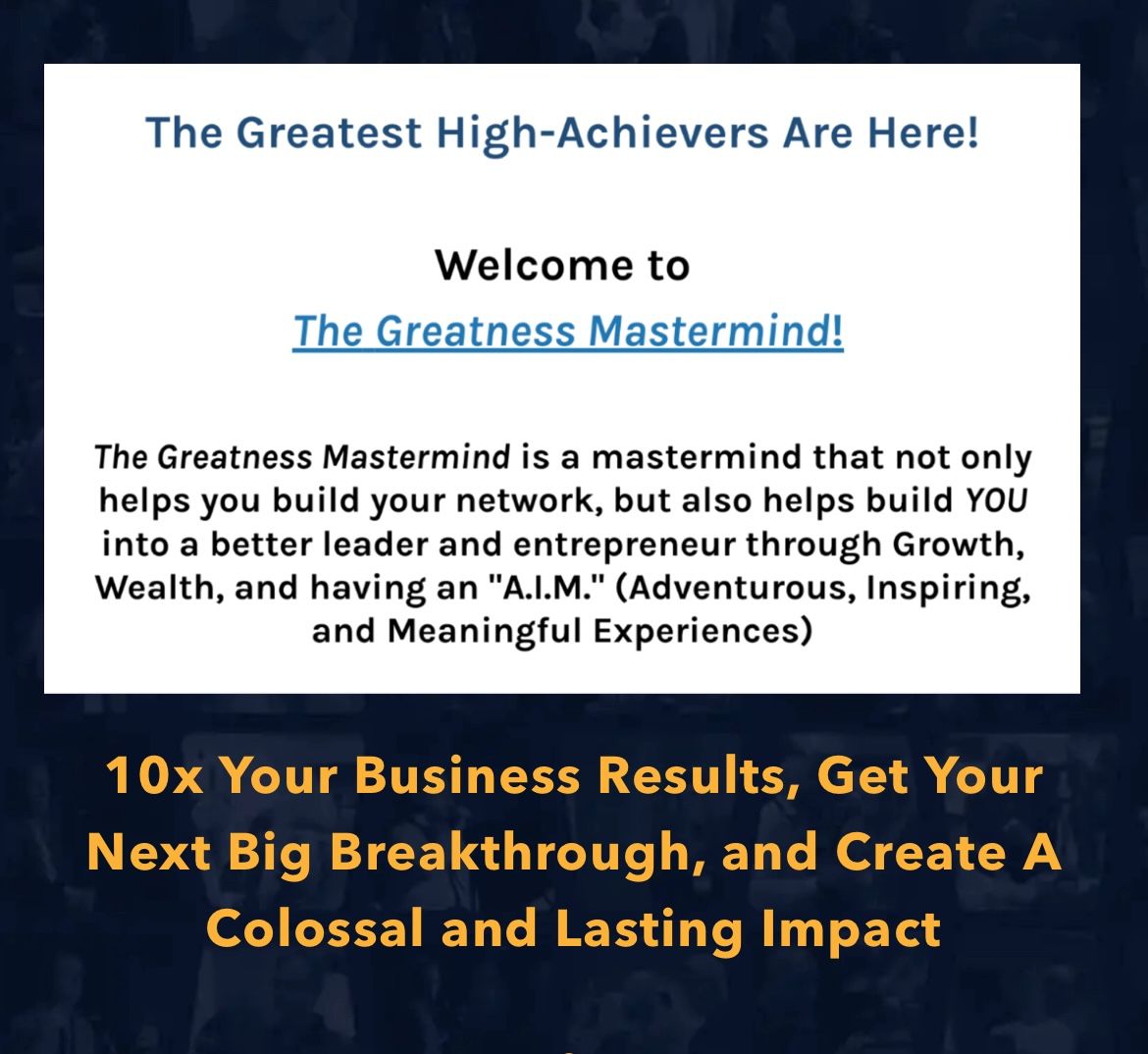 The Greatness Mastermind brings together the world’s brightest industry transformers and leaders to help people like you (if you qualify) gain access to the most relevant wisdom, strategies, and people to grow your business and design your best life.